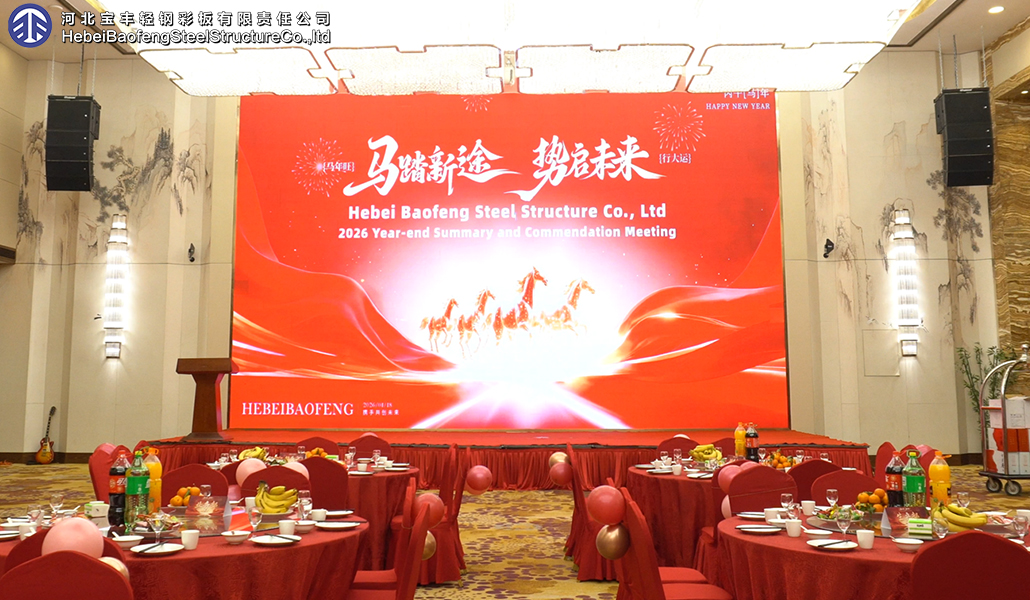 On January 18, 2026, Hebei Baofeng Steel Structure Co.,Ltd 2025 Annual Summary and Awards Ceremony was held grandly. The company's owner, management, and all employees gathered together to review the achievements of the past year, honor outstanding individuals, and look forward to a new journey. The atmosphere was festive, enthusiastic, and inspiring.