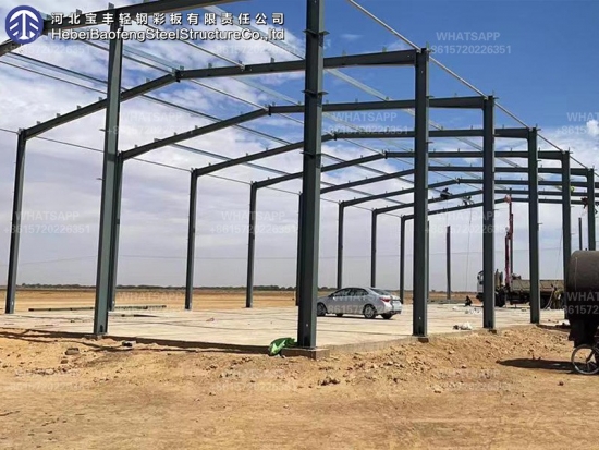 Le système de structure de cadre est composé d'un plan horizontal et vertical Cadres. comme la structure de base de la charge de la Atelier de structure en acier, le plan plan horizontal est significatif. Il est composé d'une fondation, de faisceaux de toit et d'acier colonnes.